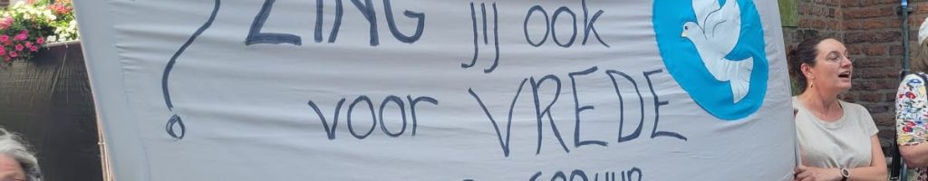 De vrouwen en mannen in Amersfoort staan er iedere vrijdag, ook als het stormt en regent, wanneer het heel heet is, of als het plein vol staat met vrachtwagens. Het gaat niet uit van een organisatie. Na het zingen drinken ze koffie met wie wil, op eigen kosten. Ik heb twee keer eerder meegezongen. Dit wordt mijn derde keer. Het is ontroerend en bemoedigend.