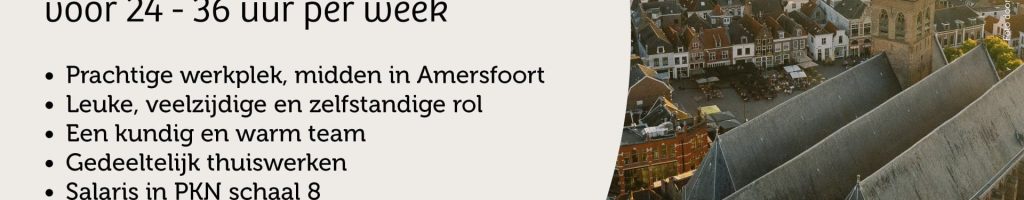 Ben jij een organisatorisch talent met hart voor de kerk? Houd je van afwisseling, ben je nieuwsgierig en kun je goed samen- én zelfstandig werken? Het Kerkelijk Bureau van de Protestantse Gemeente Amersfoort zoekt een nieuwe collega!