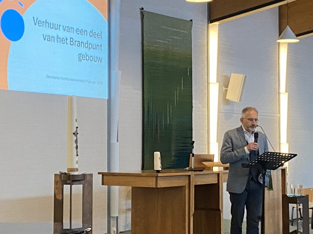 Ruim 80 leden van onze gemeenschap waren zondag 11 januari 2026 aanwezig bij het gemeenschapsberaad over de verhuur van een gedeelte van ons gebouw. Gesterkt door een krentenbolletje kregen zij een toelichting op het voorgenomen besluit van de OWR om in 2026 een deel van het gebouw te gaan verhuren aan Meijerink Uitvaartzorg. We doen hier kort verslag van de bijeenkomst. Het volledige voorgenomen besluit is beschreven in bijgaande notitie (klik)